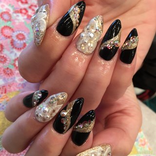 ビジュー 黒ネイルのネイルデザイン ネイルブック
